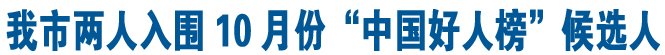 本報訊 (記者齊云霞、王海燕) 昨日,記者從市文明辦獲悉,在中央文明辦開展的“我推薦、我評議身邊好人”活動中,我市助人為樂的林瀟逸和見義勇為的楊傳玉入圍10月份“中國好人榜”候選人。