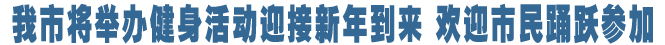 市體育局將于本月25日在市體育中心舉辦羽毛球比賽;本月28日在市籃球?qū)W校舉辦籃球賽。2011年1月1日8時(shí)30分,將在市龍?jiān)春珗@北廣場(chǎng)舉行家庭組健身跑,參加這一活動(dòng)的必須是一家兩代人(限三人),活動(dòng)限報(bào)300個(gè)家庭。想?yún)⒓拥募彝タ炜斓绞畜w育局群體科報(bào)名。元旦期間,還將在市縫山公園舉辦登高、市迎賓湖舉辦冬泳競(jìng)賽活動(dòng)。