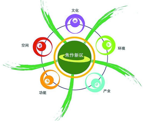 王耀武說,“五”代表著焦作新區(qū)未來重要發(fā)展的五大方面:空間、產(chǎn)業(yè)、功能、環(huán)境及文化;“彩”則寓意焦作新區(qū)以“復(fù)合型”城市為理念在城市意象中的升華,同時也象征著不同功能的色彩組團。而整體的“五彩焦作”則指未來空間有機、產(chǎn)業(yè)發(fā)達、功能復(fù)合、環(huán)境生態(tài)、文化繁榮的以焦作新區(qū)為代表的新焦作。