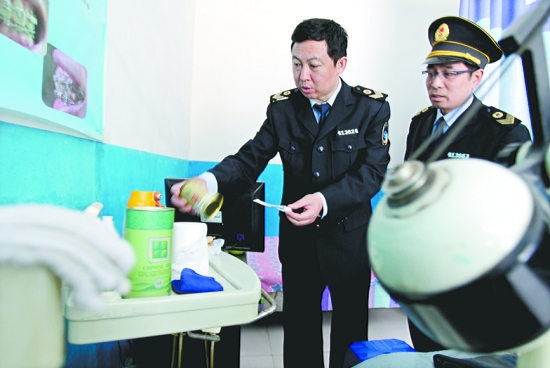 昨日上午,在河南理工大學東門一家名為“蘆堡牙科”的“黑診所”里,執法人員注意到,這家面積有15平方米的診所,看上去很干凈,仔細查看卻發現了不少問題。