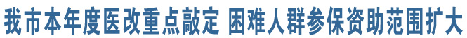 困難人群參保,資助范圍擴大。醫改工作實施兩年來,我市居民的基本醫療保障水平有了很大提高。本年度,我市將繼續提高醫療保障水平,擴大門診統籌范圍,普遍開展城鎮居民醫保、新農合門診統籌,將基層醫療衛生機構使用的醫保目錄內藥品和收取的一般診療費按規定納入支付范圍。資助困難人群參保的范圍也將擴大,資助范圍從低保對象、五保戶擴大到低收入重病患者、重度殘疾人、低收入家庭老年人等特殊困難群體。