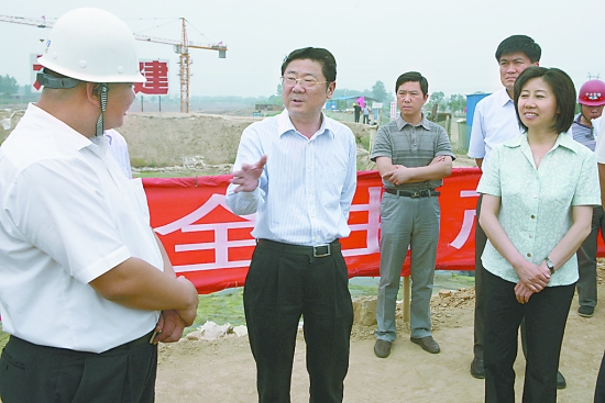 | 昨日下午,市委書記路國賢在博愛縣南水北調穿越大沙河施工現場檢查防汛工作。副市長牛越麗陪同檢查。 本報記者 趙耀東 攝 | | |