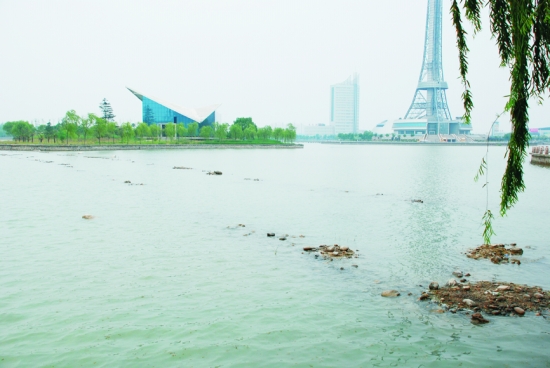 | 在龍源湖靠近東北方向的岸邊,水淺處只有20厘米左右。 | | |