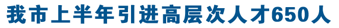 本報訊 (記者杜玲) 我市積極實施人才強市戰略,努力為經濟社會發展提供人才智力服務。據悉,今年上半年,我市引進高層次人才工作成效明顯,共引進本科以上學歷650人,其中博士生17人、碩士生82人、本科生551人。