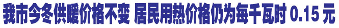 記者了解到,今年供熱價格與去年一樣,沒有變動。居民用熱價格為每千瓦時0.15元,其他用戶用熱價格為每千瓦時0.23元。