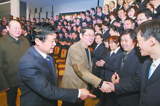 焦作日報社和市廣電局全體員工用熱烈的掌聲歡迎路國賢一行的到來。“辛苦了!”“拜個早年!”路國賢與新聞工作者一一握手,充分肯定成績,殷切寄語發展。路國賢指出,過去的一年,我市經濟社會保持了平穩較快發展,呈現出好的趨勢、好的態勢、好的氣勢。這是全市上下共同努力的結果,也與全市新聞單位的辛勤勞動分不開。一年來,全市新聞單位堅持圍繞中心,服務大局,做了大量富有成效的工作,在統一全市干部群眾思想、形成強大發展合力方面發揮了重要作用,他代表市委、市政府,向全市新聞工作者表示衷心的感謝和親切的慰問。