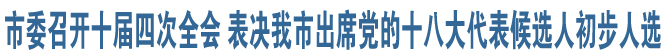 本報訊(記者董柏生、孫軍)昨日上午,市委召開十屆四次全會,表決我市出席黨的十八大代表候選人初步人選。全會由市委常委會主持。