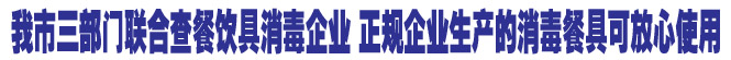 本報(bào)訊(記者劉婧)餐飲具的衛(wèi)生問(wèn)題是人們外出就餐關(guān)注的熱點(diǎn)之一。那么,提供這些消毒餐飲具企業(yè)的衛(wèi)生狀況如何?這些餐飲具的消毒是否規(guī)范?昨日,我市衛(wèi)生、工商、藥監(jiān)三部門(mén)聯(lián)合對(duì)我市部分餐飲具消毒企業(yè)進(jìn)行了抽查。