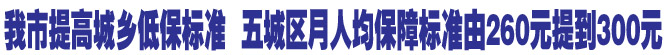 我市提高城鄉低保標準 五城區月人均保障標準由260元提高到300元