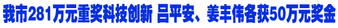 呂平安、姜豐偉各獲50萬(wàn)元獎(jiǎng)金