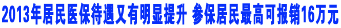 9月5日,市社會醫療保險中心工作人員將分赴我市各縣市區指導全市2013年城鎮居民基本醫療保險參保工作,我市2013年居民醫保參保工作正式開始。5日起,廣大城鎮居民可攜帶相關證件到所在社區衛生服務中心辦理參保手續。和之前相比,2013年我市參保居民所享受到的城鎮居民基本醫療保險各項待遇均有明顯提升,我市醫療保障水平進一步提高。