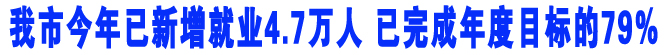 據介紹,今年我市通過狠抓統籌城鄉就業創業工作,極大地促進了我市的就業創業工作。今年年初以來,我市就業創業各項目標任務完成情況較好。全市城鎮新增就業4.7萬人,已完成年度目標的79%;1.6萬失業人員實現再就業,完成年度目標的85%;就業困難人員再就業0.5萬余人,完成年度目標的88%;發放小額擔保貸款2.4億余元,完成年度目標的99%;扶持創業4529人,完成年度目標的90.6%;新增農村勞動力轉移就業2.6萬余人,完成年度目標的65%;歷年累計轉移就業72.5萬人,占農村富余勞動力總量的76.3%。