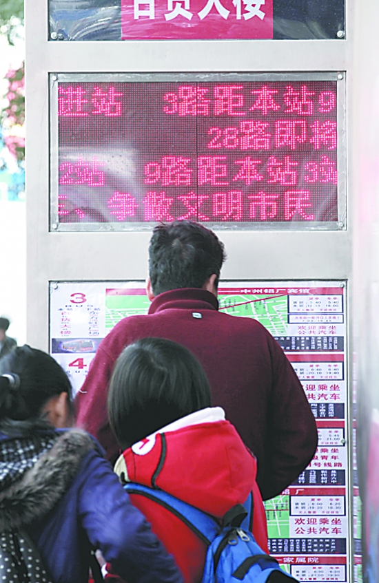 等車的時候可以隨時了解公交車信息 預(yù)計2013年市區(qū)主干道公交站牌將全部電子化