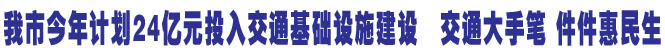 本報訊 (記者楊珂 見習記者李征) 干線和農村公路已進入周期性的養護高峰,建設、養護資金及運營經費嚴重不足的多重壓力進一步凸顯……面對這些基礎設施建設出現的新困難、新問題,1月18日上午,記者從全市交通運輸工作會議上獲悉,我市今年計劃完成交通基礎設施建設投資24億元,將從高速公路、干線公路、農村公路、場站建設等交通基礎設施建設的方方面面惠及民生。