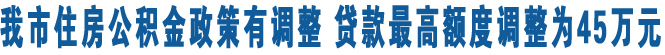 為更好地發揮住房公積金制度的優惠政策,進一步加大對繳存職工購買住房的信貸支持力度,結合我市實際和職工購房具體需求,我市調整住房公積金貸款有關政策。具體的政策調整內容為:將住房公積金貸款最高額度由原來的40萬元調整為45萬元。將貸款申請條件中申請人的住房公積金繳存時間由原來的12個月調整為6個月;申請貸款職工由于所在單位的原因拖欠繳存住房公積金的,須由單位一次性補繳貸款職工所欠住房公積金,并自補繳之月起按月連續繳存住房公積金3個月后,可申請貸款。貸款貼息對象增加“被房管部門批準認購經濟適用房的”和“借款人家庭成員遭受重大突發事件造成還款困難的”,可以申請住房公積金貸款貼息;貸款貼息條件中取消對所購房屋面積的限制。取消商業貸款轉住房公積金貸款業務所提交材料中的商品房買賣合同和借款抵押合同,只須提供辦理原商業銀行住房貸款的借款合同原件及復印件,以及原貸款銀行出具的貸款余額證明;借款人使用自有資金結清原商業貸款的,不需要提供擔保公司擔保(貸款資金劃入借款人賬戶)。取消住房公積金“月沖還貸”業務對還款期次的限制,借款人可在貸款申請辦理的同時申請辦理“月沖還貸”。
