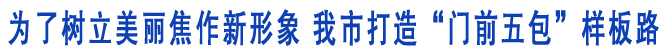 3月2日,我市全面啟動(dòng)了“美麗焦作大家行”活動(dòng)。活動(dòng)重在號(hào)召城區(qū)主干道兩側(cè)門(mén)店落實(shí)“門(mén)前五包”責(zé)任制,為焦作更美麗作出應(yīng)有的貢獻(xiàn)。“門(mén)前五包”,即包市容秩序規(guī)范、包環(huán)境衛(wèi)生整潔、包美化亮化達(dá)標(biāo)、包綠地綠化完好、包設(shè)施功能完善。通過(guò)這一具有廣泛的群眾性、自覺(jué)性、現(xiàn)實(shí)性和長(zhǎng)期性的城市管理模式,實(shí)現(xiàn)城市道路及兩側(cè)市容秩序井然、車(chē)輛停放有序、環(huán)境衛(wèi)生整潔、各類(lèi)廣告標(biāo)牌規(guī)范、園林綠化品位提高、市政設(shè)施功能完善的目的。