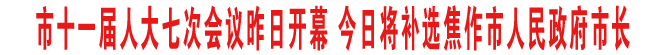 本報(bào)訊 (記者王愛紅) 昨日下午,焦作市第十一屆人民代表大會(huì)第七次會(huì)議在市會(huì)議中心圓形報(bào)告廳開幕。根據(jù)會(huì)議議程,這次大會(huì)今日將補(bǔ)選焦作市人民政府市長(zhǎng)。
