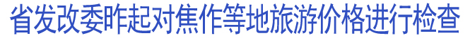 市發改委特別強調,在此次檢查過程中,各級價格主管部門應集中力量抓好重點區域、重點對象、重點行為的檢查,堅持查處與規范并舉、整治與服務并重,務求取得實效。同時提醒廣大市民,如果對我市旅游行業價格收費有異議,可以撥打價格舉報投訴電話:12358。