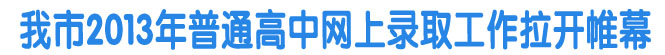 本報訊 (記者劉婧 實習生韓長玲) 昨日,我市2013年普通高中網上錄取工作拉開帷幕。記者從當日召開的全市中招錄取工作會議上了解到,今年普通高中招生錄取將嚴格按照考生志愿,從高分到低分按計劃、批次進行網上錄取。