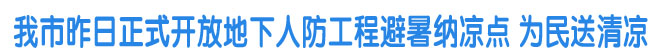 市人防辦主任劉秋香說,為充分發揮人防工程“服務民生、保障民生、惠及民生”的社會效益,使廣大市民在炎炎夏日里有一個納涼、休閑、娛樂的場所,我市人防部門已連續3年投入人力、物力,為群眾開辟地下人防工程避暑納涼點。由于產權單位有了新的規劃,前兩年開辟的幾個地下人防工程納涼點,今年已不能繼續用于避暑納涼。今年6月下旬以來,市人防辦開始積極與產權單位協調,尋找新的地下人防工程避暑納涼點。