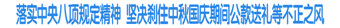 近日,習近平總書記在遼寧考察時強調,重大節日期間,是對干部作風的重要檢驗;中秋節、國慶節就要到了,要堅決剎住公款送節禮、公款吃喝、公款旅游和奢侈浪費等不正之風,過一個風清氣正的中秋節、國慶節。為貫徹習近平總書記重要指示,深入推進黨的群眾路線教育實踐活動,切實落實中央八項規定精神,堅決反對“四風”,現重申如下紀律要求:
