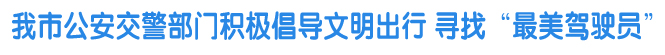 今年12月2日是第二個“全國交通安全日”。為倡導文明禮讓、嚴格遵守交通安全法規的社會文明交通風尚,摒棄交通陋習,安全文明出行,市公安交警支隊在市區開展了尋找“最美駕駛員”“文明行者”活動。