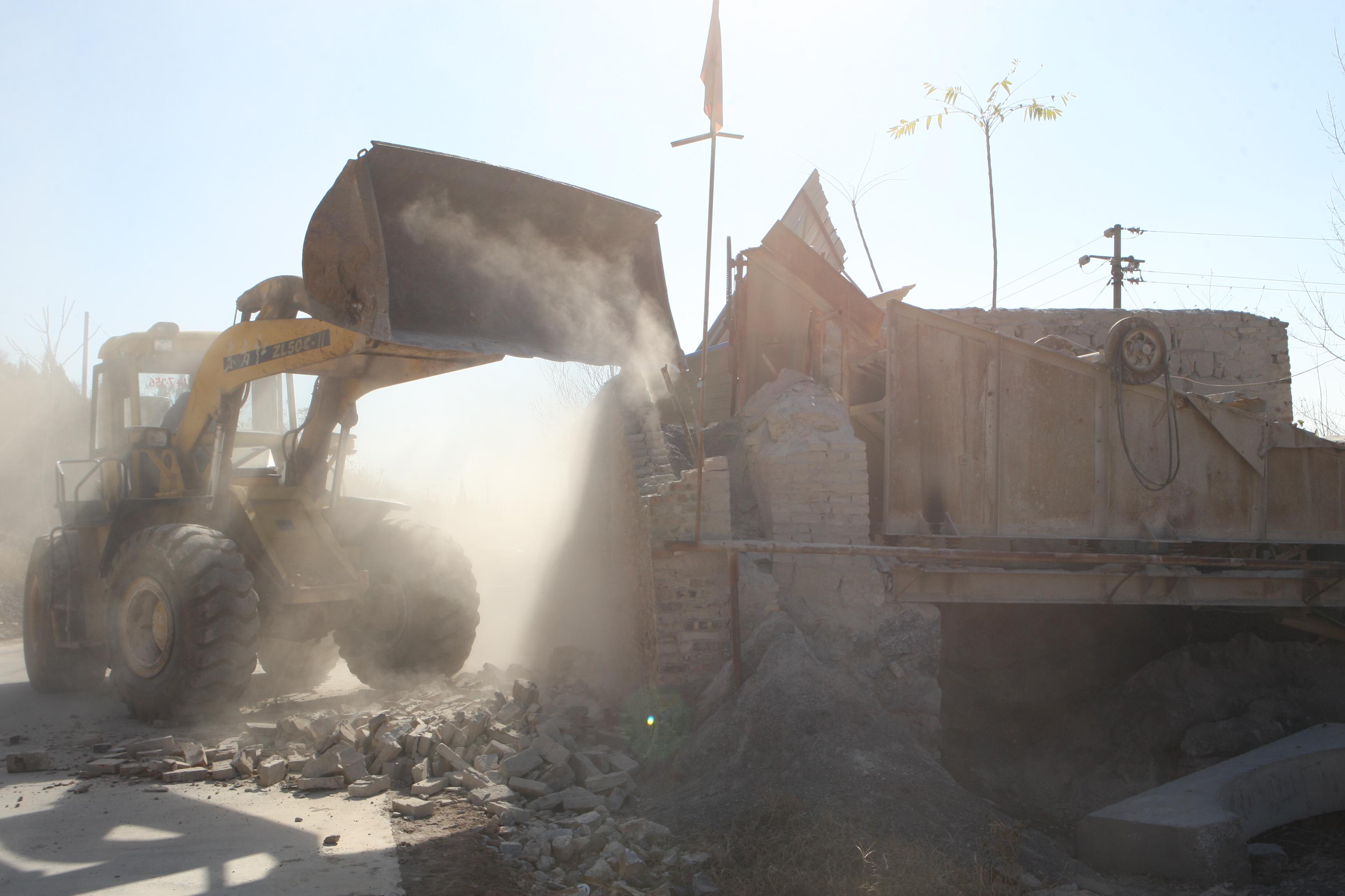 12月2日,解放區影視大道兩側綜合整治小分隊正用機械車輛拆除一家企業設備。連日來,解放區集中力量快速行動,強力推進影視大道兩側環境綜合整治工作。李良貴 攝