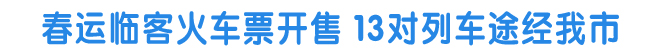 焦作火車站相關負責人介紹,為方便春節期間旅客出行,鐵路部門最新確定了春運期間臨時旅客列車的開行日期,其中途經我市的13對臨客(見下表)主要集中在北京西、成都、重慶、襄陽等方向,旅客可根據自己的行程安排選擇購票乘坐。