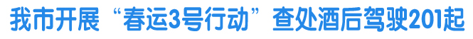 據(jù)介紹,“春運3號行動”中,市公安交警部門共查處酒后駕駛201起,其中醉酒駕駛9起;查處無證駕駛、客車超員和機動車涉牌涉證等交通違法行為100余起。