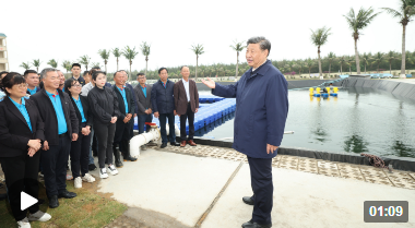 10日上午,習近平總書記首站來到位于湛江市東海島的國家863計劃項目海水養殖種子工程南方基地。