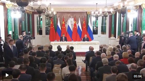 習近平指出,剛才,我同普京總統舉行了深入友好、富有成果的會談,達成許多新的重要共識。我們共同簽署《中華人民共和國和俄羅斯聯邦在紀念中國人民抗日戰爭、蘇聯偉大衛國戰爭勝利和聯合國成立80周年之際關于進一步深化中俄新時代全面戰略協作伙伴關系的聯合聲明》,見證兩國有關部門交換多份合作文本,為中俄關系發展注入新的動能。