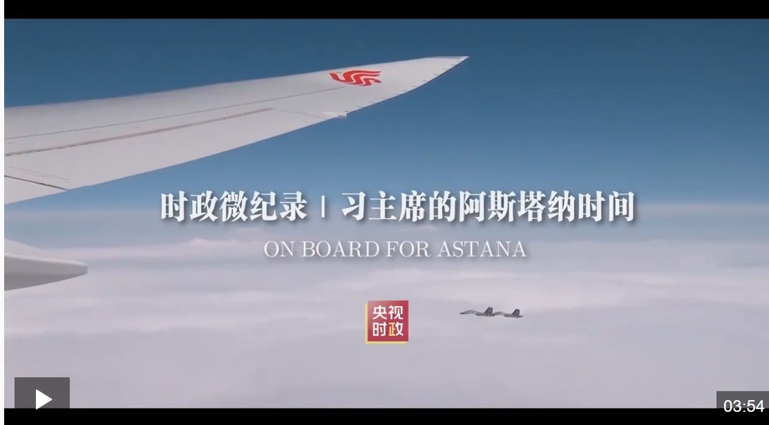 當地時間6月16日中午,國家主席習近平乘專機抵達阿斯塔納,應哈薩克斯坦共和國總統托卡耶夫邀請,出席第二屆中國-中亞峰會。