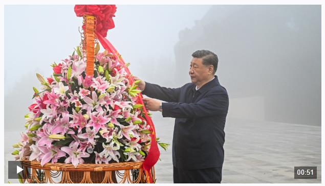 獨家視頻丨習近平在山西陽泉市向抗戰烈士敬獻花籃并參觀百團大戰紀念館