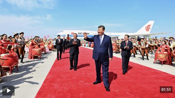 中共中央總書記、國家主席、中央軍委主席習近平率中央代表團23日下午乘專機抵達烏魯木齊,出席新疆維吾爾自治區成立70周年慶祝活動。習近平作為中共中央總書記、國家主席、中央軍委主席率中央代表團到新疆出席新疆維吾爾自治區成立慶祝活動,在黨和國家歷史上是第一次,充分體現了黨中央對新疆工作的高度重視、對新疆各族干部群眾的親切關懷。