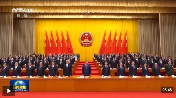 上午10時30分許,在歡快的樂曲聲中,習近平等領導同志走上主席臺,全場響起長時間的熱烈掌聲。